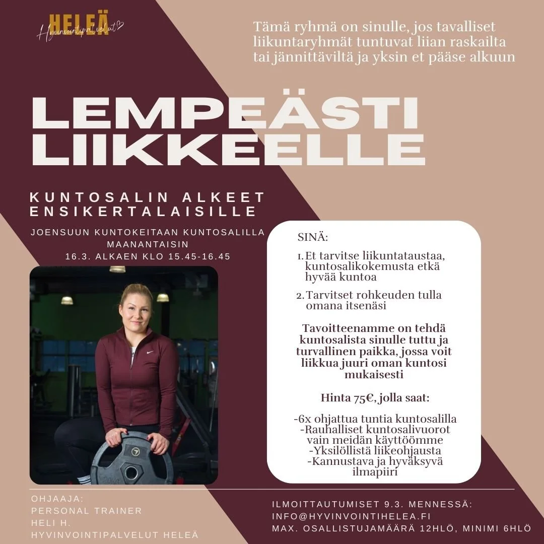 LEMPEÄSTI LIIKKEELLE- kuntosalin alkeet ensikertalaisille (16.3. alkaen)